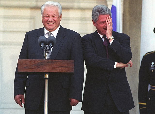 Russian policy proposed collaboration in the defence industry, with legal prohibitions on nuclear weapons in new NATO states and stationing of foreign troops, but neither got anywhere while Clinton approved the testing of new nuclear weapons systems. Promises from Yeltsin to potential NATO members of a security guarantee and complaints of Russian humiliation achieved nothing. In any case, Yeltsin was Washington’s man with Clinton stating that “Yeltsin drunk is better than most alternatives sober.”