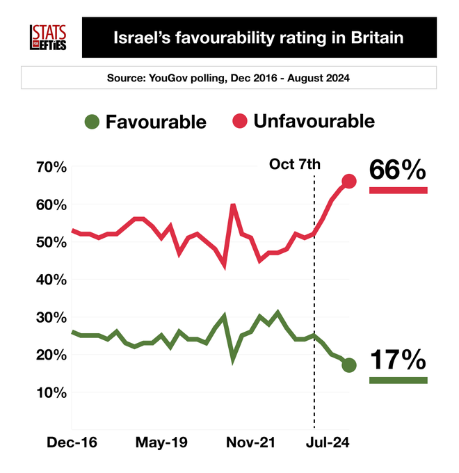 No one reading this will need an exposition of the lies and hypocrisy these statements involve, told by either the Zionist leaders or their Western backers: the selective condemnation of terrorism, selective endorsement of the right to self-defence, selective concern for civilian casualties and selective condemnation and sanctions against outside invasion.  All this is obvious.  Starmer’s support and defence of the genocidal Zionist regime has played a part in the collapse of his already low popularity and that of his government – his net approval number is now minus 30 and his government less popular than the one that has just been shredded: